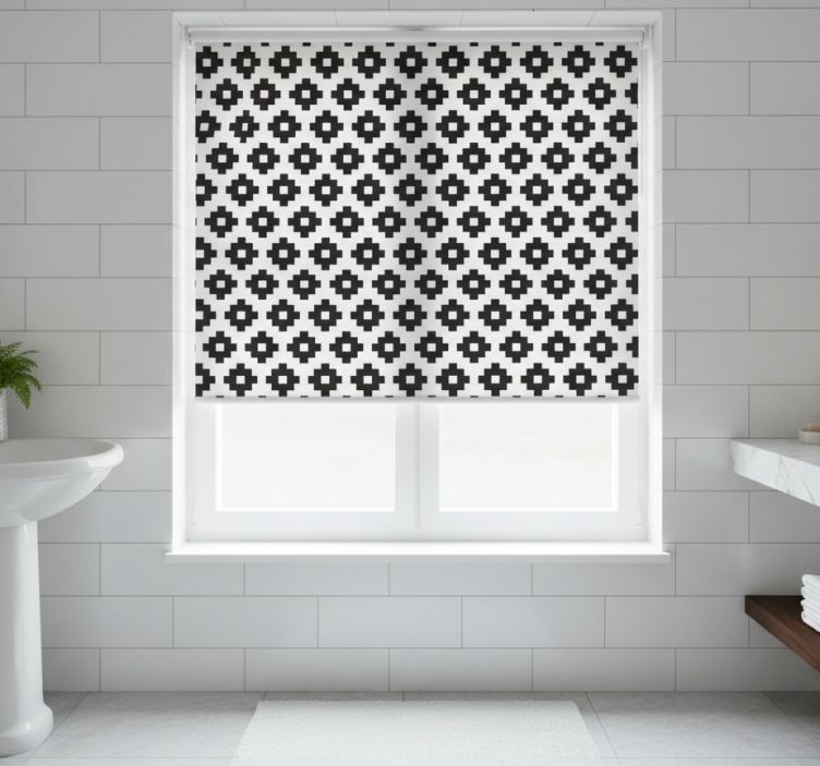 Reference: E6169Transform your bathroom with our stunning Bathroom blind with geometric tile design. This roller blind features a captivating geometric tile pattern, combining modern aesthetics with functionality. Its easy assembly in just two clicks, along with easy disassembly, makes it a breeze to clean and maintain. Not only does it protect your space from direct sunlight, but it also provides essential privacy when lowered, allowing you to enjoy your personal sanctuary without interruptions. With the ability to regulate room temperature and enhance security, this blind is a must-have for any stylish bathroom!