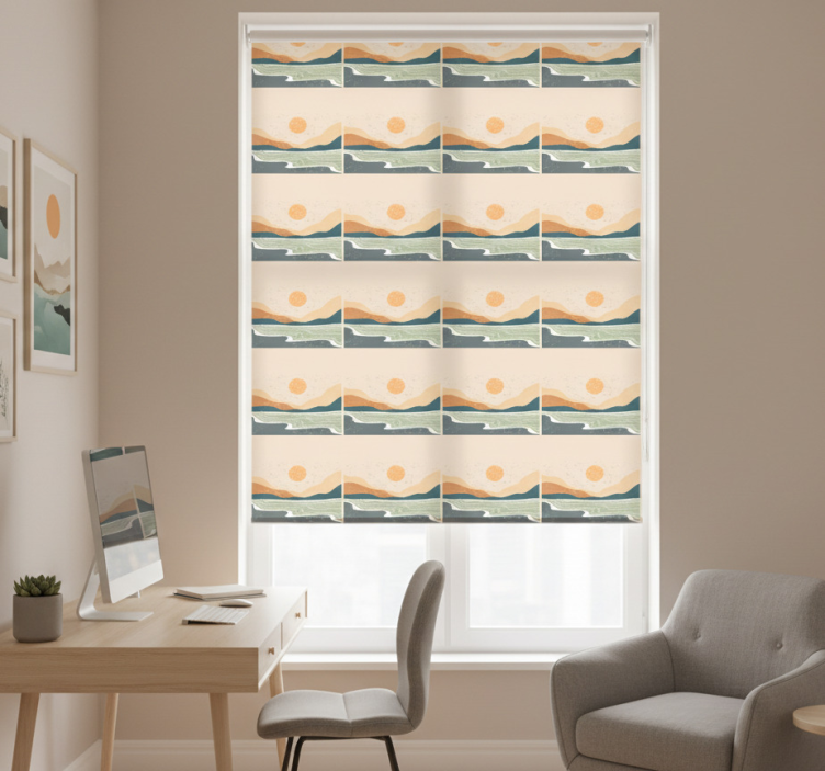 Enhance your surroundings with the Blind home office abstract sunset mountains blind home office! This roller blind serves as a magnificent centerpiece, inspiring productivity while adding a touch of elegance to your decor. The stunning design draws attention and creates a serene atmosphere, making your workspace more inviting and enjoyable. Elevate your home office experience with this exquisite blend of art and functionality!