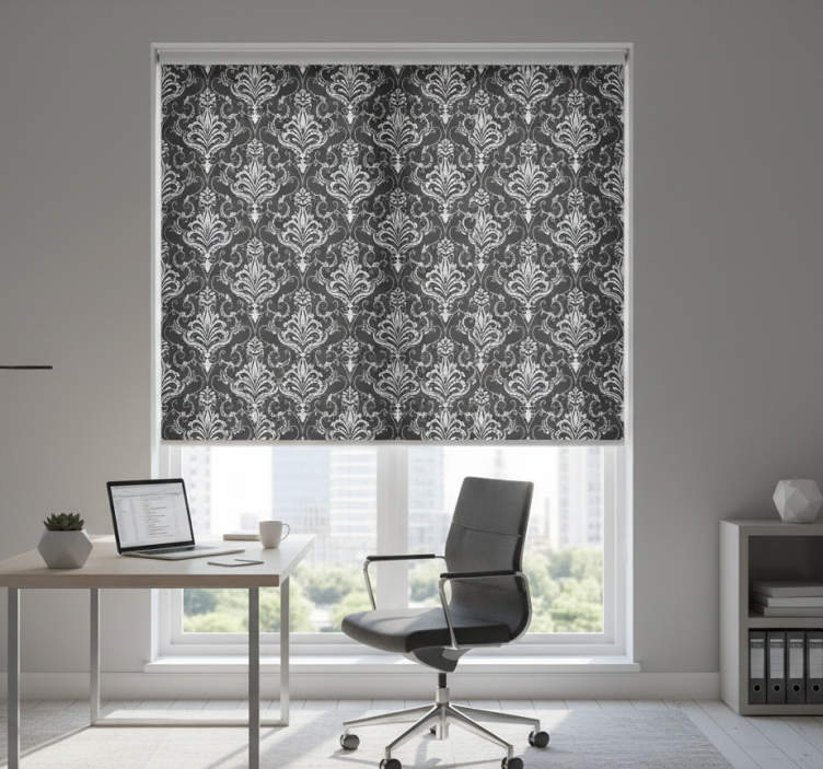 The Blind home office with baroque botanical design blind home office is more than just a window covering; it’s a statement piece that transforms any room into a stylish sanctuary. Imagine working in an environment that inspires creativity with its lush patterns, making every task feel more enjoyable. This blind not only complements your decor but also invites a serene ambiance, encouraging productivity while adding a touch of nature's beauty to your home.