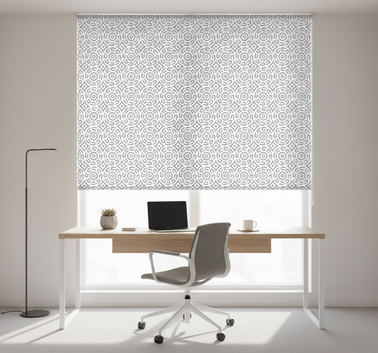 The Blind home office with white geometric circles blind home office is the perfect choice for anyone looking to elevate their interior decoration. With its contemporary design and versatile pattern, this roller blind effortlessly complements various decor styles, creating an inspiring and productive environment. Imagine transforming your workspace into a stylish retreat where creativity flourishes!