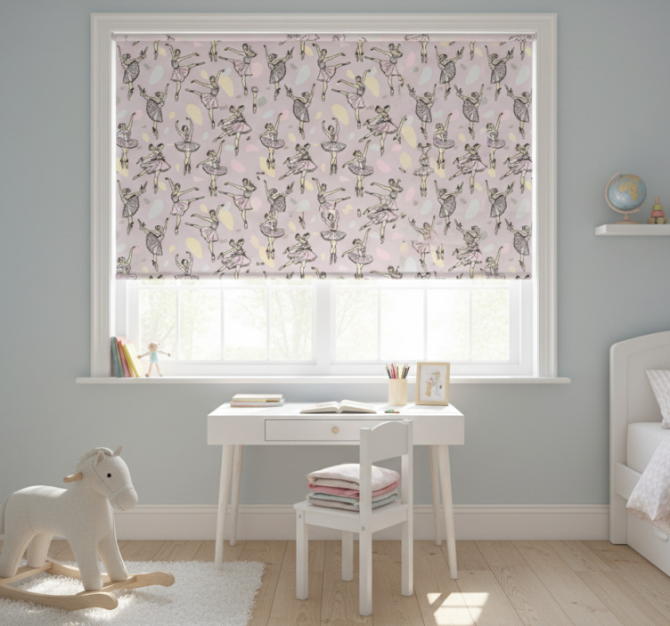 Reference: E6844Introducing our stunning Blind kids ballerina ballet roller blind, designed with a charming ballet theme that captivates the imagination! The design features delightful ballerinas gracefully dancing, complemented by soft pastel colors that create a whimsical atmosphere. This enchanting roller blind not only serves as a beautiful decoration but also offers practical benefits for any child's room.
