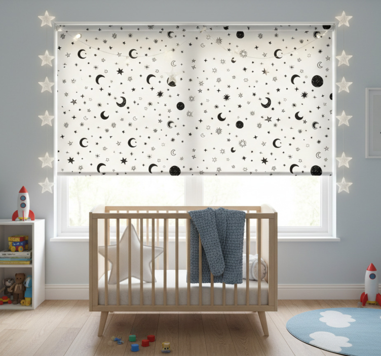 Reference: E6883Introducing our captivating roller blind, designed specifically for Blind kids discovering outer space with stars. This enchanting product features a vibrant cosmic theme that is visually stimulating, allowing the imagination to soar. With its easy assembly in just two clicks, straightforward cleaning process, and quick disassembly, this roller blind seamlessly combines functionality with aesthetic appeal. It also protects the room from direct sunlight, enhances privacy, and allows for temperature regulation, making it a perfect addition to any child's space!