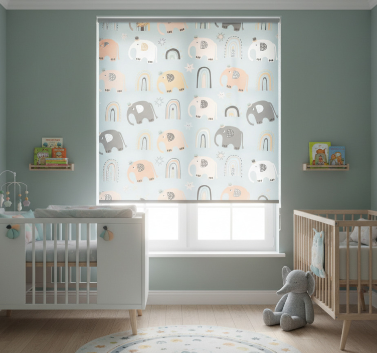 Reference: E6820Introducing our stunning Blind kids elephant rainbow patterns roller blind, designed to bring a splash of color and joy to any child's room! Featuring enchanting elephant motifs in vibrant rainbow hues, this design not only captures the imagination but also transforms the space into a lively and cheerful environment. The unique blend of playful elements ensures that it complements any decor while providing functionality and charm!
