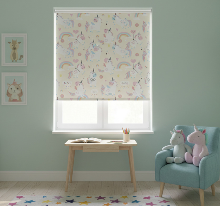Reference: E7024Introducing our enchanting Blind kids magical unicorns roller blind, designed to bring joy and wonder to any child's room! Featuring a stunning array of colorful unicorns dancing amidst a whimsical landscape, this blind captures the imagination and creates a fairy-tale atmosphere. Its easy assembly in just 2 clicks and effortless cleaning make it the perfect choice for busy parents. With the ability to customize measurements, you can ensure a perfect fit for your windows, enhancing the overall decoration of the space!