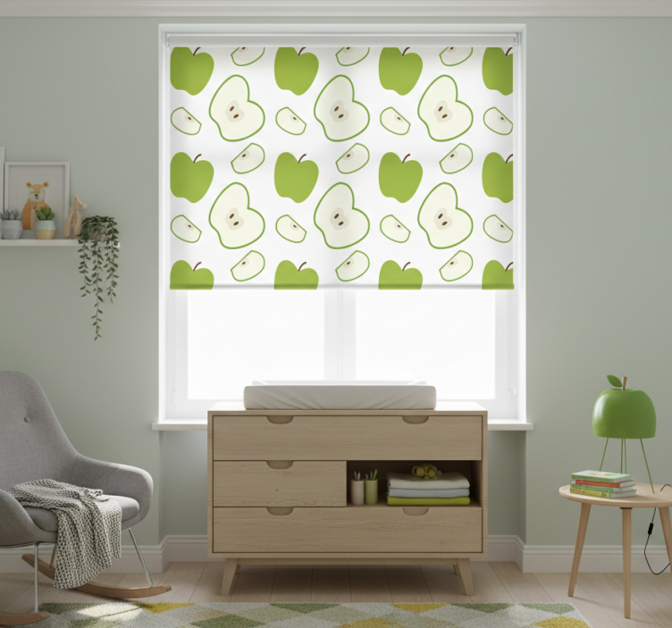 Reference: E6877Introducing our delightful Blind kids joyful green apples, a vibrant and playful design that captures the essence of childhood joy! This roller blind showcases a stunning graphic of bright green apples, creating an atmosphere that radiates happiness and creativity. The design features an easy assembly process in just two clicks, making it simple for everyone to install. Its materials allow for effortless cleaning, ensuring that your decor remains fresh and inviting. This product not only protects your space from direct sunlight but also provides the privacy needed for a cozy home environment.
