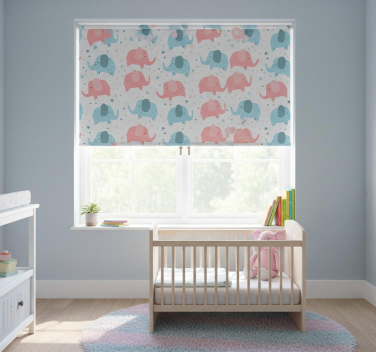 Reference: E7095The Blind kids pink and blue elephant design features a delightful combination of playful pink and calming blue tones, beautifully illustrated elephants that capture the imagination, and whimsical elements that create an enchanting atmosphere for any child's space. This design is not only visually appealing but also thoughtfully crafted to evoke joy and wonder in your little ones!