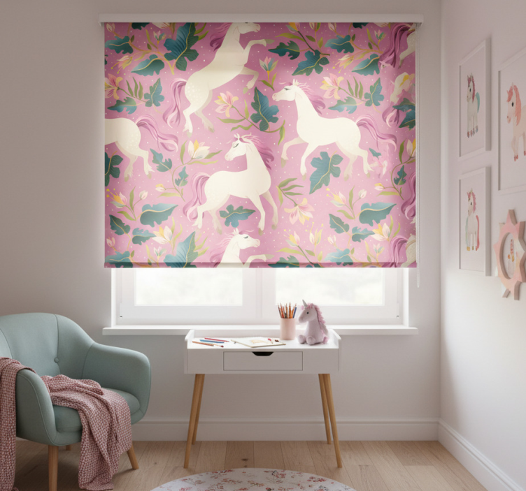 The Blind kids pink and floral horse design blind kids is more than just a window covering; it’s a source of inspiration that transforms any space into a magical retreat! Its playful design sparks creativity and wonder, making it ideal for decorating a child's room. By choosing this unique roller blind, you not only enhance the aesthetic appeal of the room but also create a comforting environment for your little ones to grow and dream in!