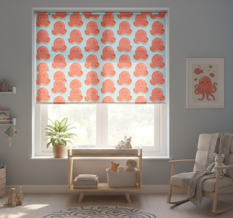 Transform your child's space with the Blind kids red octopus design blind kids! This captivating roller blind serves as both a functional window covering and a stunning decorative element. It sparks imagination and brings a sense of adventure to the room, creating a joyful atmosphere. With its vibrant colors and engaging design, it encourages creativity and makes the space feel warm and inviting.