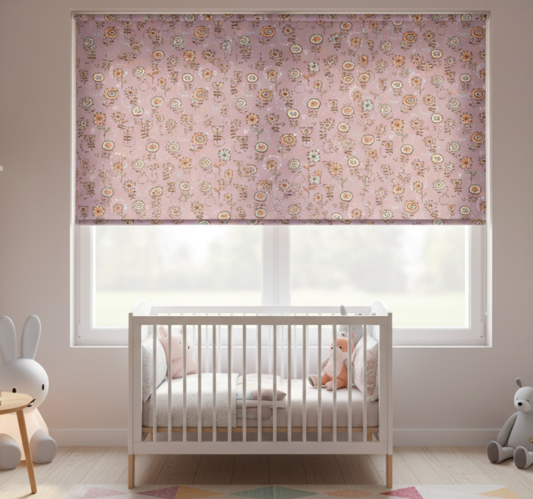 Reference: E6889Introduce a touch of charm to your child's space with our Blind kids swedish pink floral design. This beautifully crafted roller blind features a delightful pink floral pattern inspired by Swedish design, making it a perfect fit for any room. The design not only enhances the aesthetics but also includes features such as easy assembly in 2 clicks, easy cleaning, and quick disassembly, ensuring convenience for busy parents. The roller blind effectively protects the room from direct sunlight, provides privacy when lowered, and helps regulate room temperature, creating a cozy and secure environment.
