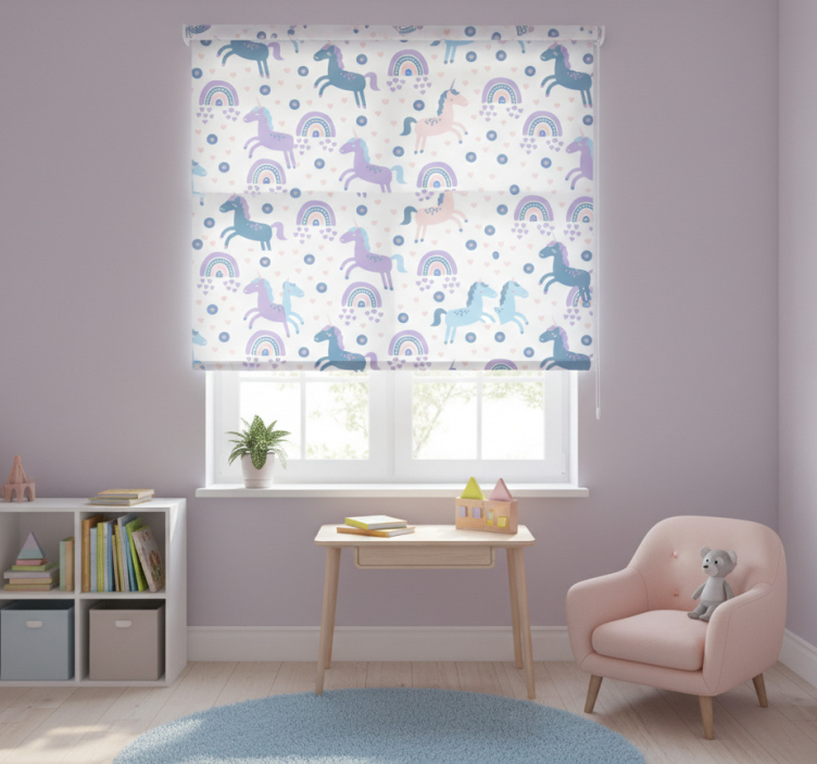 Reference: E7198Introducing our Blind kids sweet pastel unicorns pattern, a delightful design that brings joy and whimsy to any space! Featuring adorable unicorns in soft pastel shades, this pattern is perfect for creating a magical atmosphere. The enchanting graphic includes playful motifs that inspire imagination, making it ideal for a child's room or play area. Brighten up your decor with this charming roller blind design that combines functionality with fun!