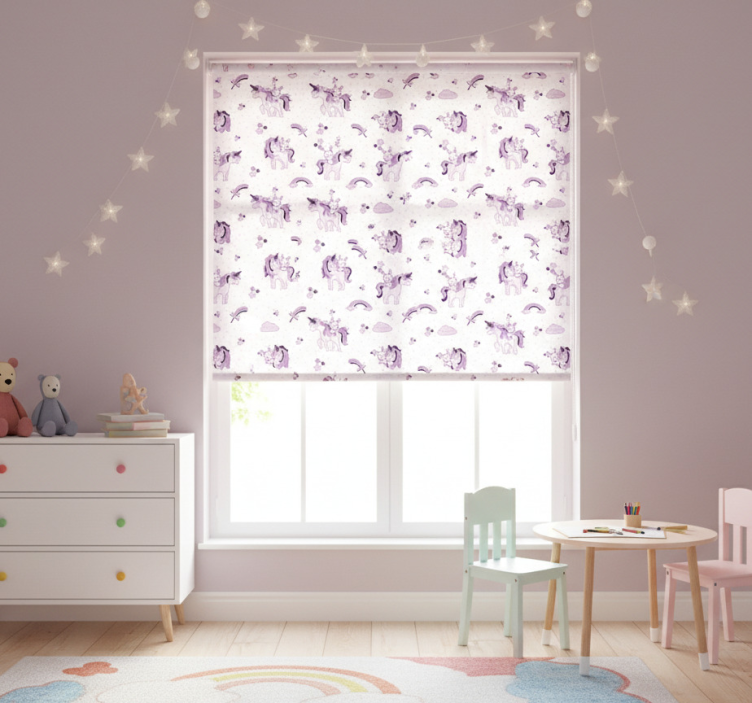 The Blind kids unicorn and rabbit among stars blind kids roller blind is not just a functional window covering; it is a celebration of creativity and imagination! By adorning your child's space with this delightful design, you encourage an atmosphere of wonder and inspiration. It serves as a beautiful backdrop for playtime adventures and bedtime stories, making the room a cozy retreat that sparks joy every day!