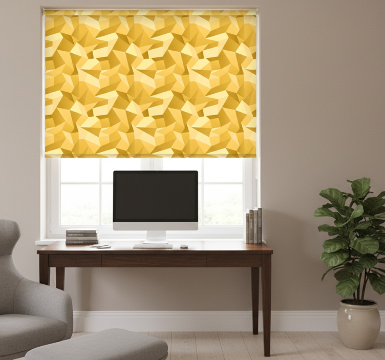 The Blind office 3d gold geometric forms blind office is not just a functional item; it is a statement piece that transforms any environment. Imagine a workspace adorned with these gorgeous geometric designs that catch the eye and inspire creativity! This roller blind is perfect for those who appreciate the fusion of art and utility, making it an ideal choice for modern offices and stylish home workspaces alike. Elevate your décor and create a motivating atmosphere with this exceptional design that captivates and charms!