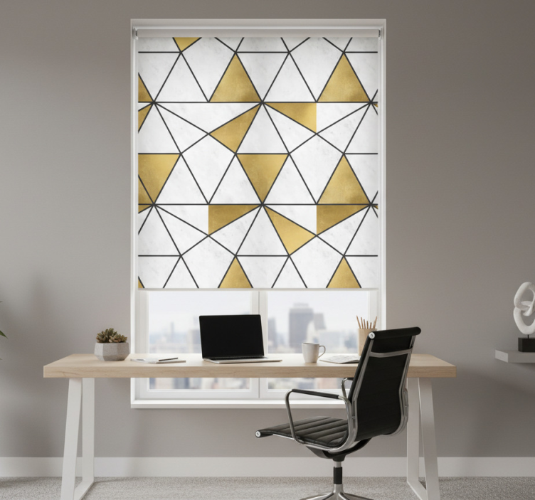 The Blind office geometric marble effect blind office serves as a perfect decorative solution that elevates your workspace. Its unique design harmonizes with various interior styles, making it an inspirational choice for those looking to create an inviting atmosphere. This roller blind not only beautifies the room but also provides essential privacy and sunlight protection, allowing you to focus and thrive in your work environment!