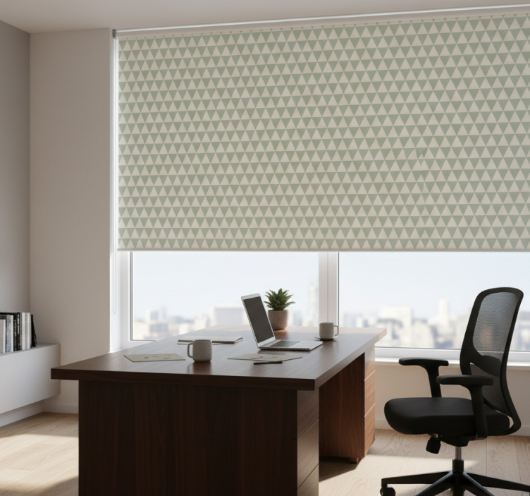 The Blind office grey triangular shapes blind office is the perfect choice for those looking to add a touch of elegance to their workspace. Its artistic design transforms an ordinary office into a stylish environment, inspiring creativity and productivity. By integrating this roller blind into your decor, you not only enhance the visual appeal but also create a calming atmosphere that promotes focus. Imagine working in a beautifully designed space where style meets functionality!