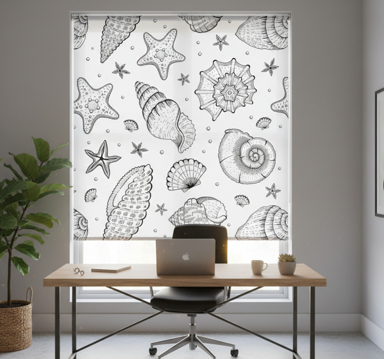 The Blind office marine life and seashells black white blind office is the perfect decorative solution to enhance your space! Its unique design brings the beauty of the ocean indoors, inspiring creativity and tranquility. By choosing this roller blind, you’re not just adding a window treatment; you’re creating an inviting environment that reflects your personality and love for marine aesthetics, making your office a delightful place to work.