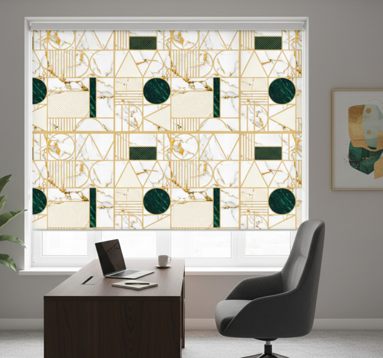 Reference: E7300Introducing our stunning Blind office white marble geometric design, a perfect blend of elegance and functionality! This design features a captivating white marble pattern complemented by geometric shapes that transform any space into a sophisticated haven. With easy assembly in just 2 clicks, effortless cleaning, and the ability to protect your room from direct sunlight while maintaining your privacy, this roller blind is a must-have addition to your office decor!
