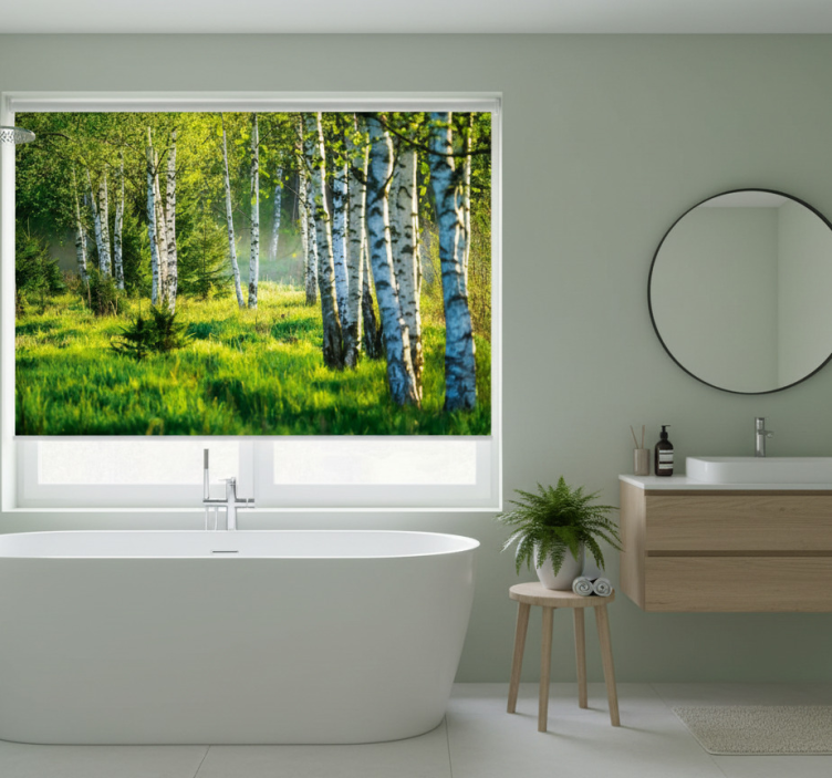 Reference: E6145Introducing our Blind trees birch grove contemporary, a visually stunning roller blind that transforms any space into a serene haven. With its elegant birch tree design and a contemporary touch, this blind not only enhances your decor but also provides essential functionalities. The roller blind features easy assembly in just two clicks, effortless cleaning, and convenient disassembly for quick access to your windows. It effectively protects your room from direct sunlight while ensuring your privacy when lowered, allowing you to enjoy natural light without compromising on comfort.