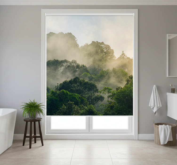 Reference: E6155Transform your living space with our Blind trees lush jungle canopy roller blind, designed to evoke the serene beauty of a jungle canopy. With features like easy assembly in two clicks, effortless cleaning, and customizable measurements, this roller blind not only enhances your decor but also provides functionality. It protects your room from direct sunlight, offers privacy when lowered, and helps regulate room temperature while ensuring security by allowing you to see without being seen.