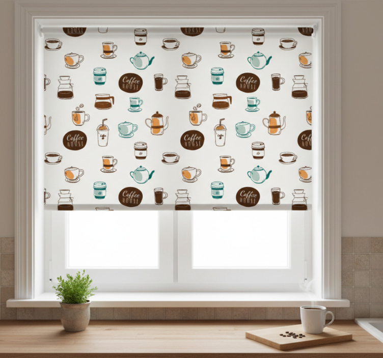 Reference: E6478Transform your space with our stunning Blinds in a kitchen coffee house cafe design. This beautifully crafted design features easy assembly in just two clicks, effortless cleaning, and quick disassembly, making it a perfect choice for any busy kitchen. The blinds not only protect your room from direct sunlight but also provide privacy when lowered, allowing you to enjoy your coffee house ambiance without interruptions. With customizable measurements and three different textures, you can tailor the look to suit your style while regulating room temperature and enhancing security.