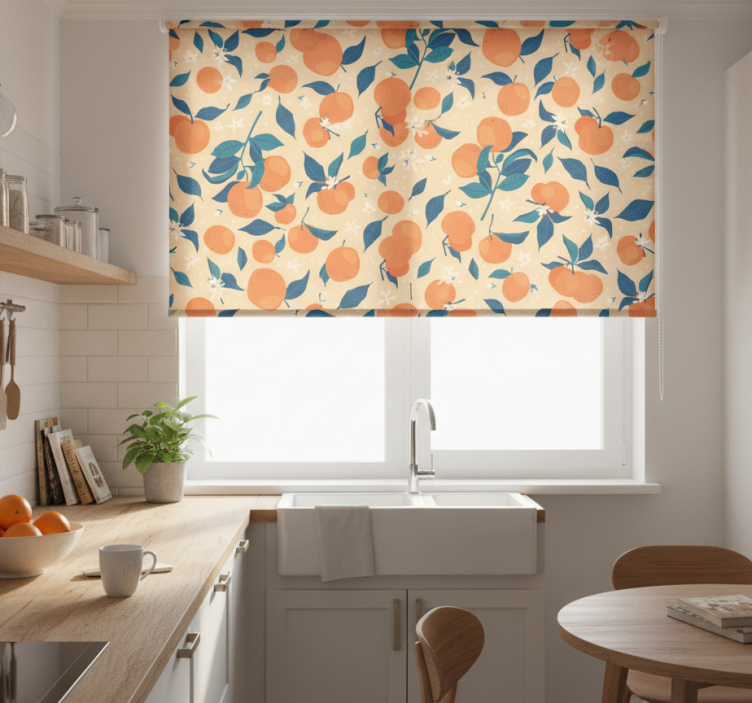 Reference: E6509Transform your kitchen into a vibrant space with our Blinds in a kitchen set of oranges! This stunning design features a lively orange pattern that brightens up any room, while providing essential functionality. With easy assembly in 2 clicks, easy disassembly in 2 clicks, and a chain to raise and lower, these blinds are perfect for enhancing your kitchen's ambiance. They not only protect the room from direct sunlight but also provide privacy when lowered, making them a practical choice for any home.