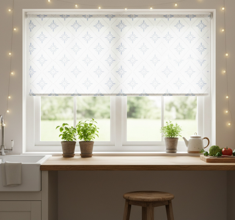 Reference: E6476Transform your kitchen into a stylish haven with our stunning Blinds in a kitchen with blue diamond tiles. This unique design effortlessly combines elegance with functionality, featuring easy assembly in just two clicks, easy cleaning, and disassembly to ensure a pristine environment. Not only do these blinds protect your room from direct sunlight, but they also provide essential privacy when lowered, allowing you to enjoy your space without compromising on style. With the ability to regulate room temperature and enhance your home's security while still allowing you to see outside, these blinds are the perfect addition to any kitchen décor!