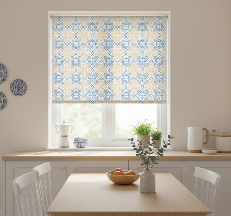 Transform your kitchen into a stunning visual masterpiece with our Blinds in a kitchen with blue lines portuguese tile pattern blinds in a kitchen. This exquisite design not only enhances the overall decor but also infuses personality into your space! Imagine the compliments you’ll receive from friends and family as they admire the harmonious blend of modern and traditional styles. Let these blinds inspire your culinary adventures and create a warm atmosphere that everyone will love!