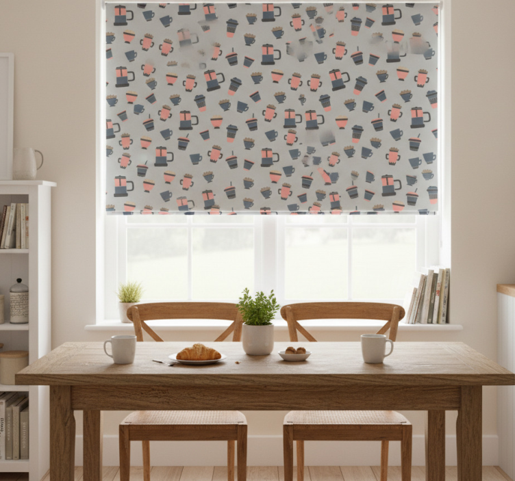 Reference: E6450Transform your kitchen into a cozy café with our Blinds in a kitchen with coffee takeaway design. This beautiful design features charming coffee cup graphics, warm earthy tones, and an inviting layout that brings a touch of your favorite coffee shop right into your home. The Blinds in a kitchen with coffee takeaway design not only enhance your kitchen aesthetics but also serve practical purposes, making them an essential addition to your décor.