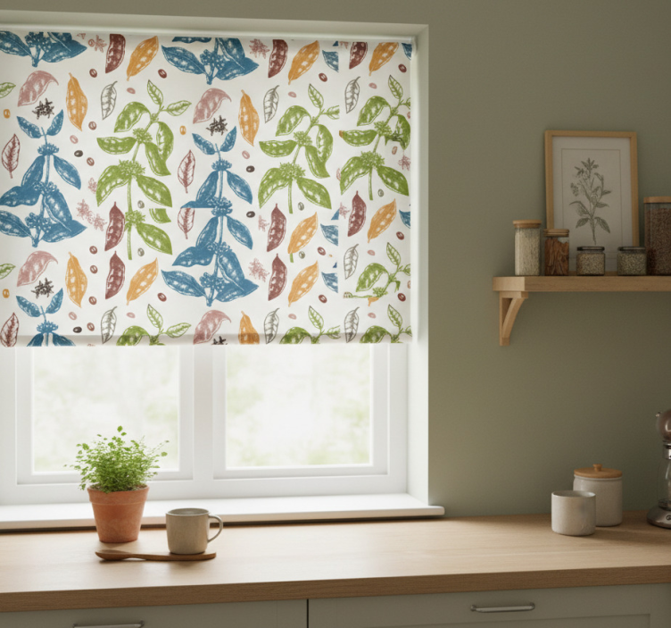 Our Blinds in a kitchen with colorful coffee plant pattern blinds in a kitchen are the perfect choice for adding a touch of personality to your home. The vibrant coffee plant design energizes your kitchen decor, creating an inviting atmosphere for family and friends. They enhance your interior while offering functionality, making your space not just beautiful but also practical. Elevate your kitchen decor with these stunning blinds and enjoy the transformation they bring!