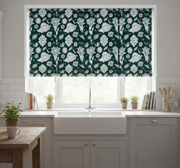 Installing our Blinds in a kitchen with indian paisley design blinds in a kitchen is a breeze! Simply follow our straightforward instructions, and you’ll have your beautiful blinds up in no time. Enjoy the seamless blend of functionality and style that these blinds offer!