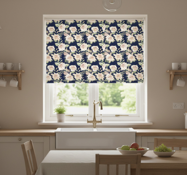 Choosing our Blinds in a kitchen with vintage rose pattern on blue blinds in a kitchen is a wonderful way to enhance your home’s aesthetic. This beautifully designed roller blind not only elevates the decor but also inspires creativity in your cooking space. Imagine how the vibrant roses will complement your kitchenware, creating a harmonious blend of style and functionality!