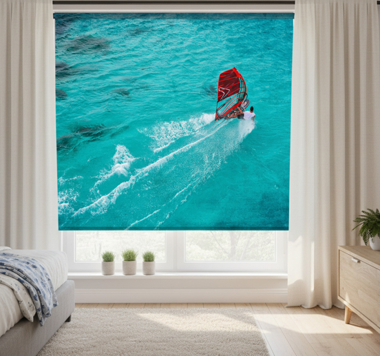 Elevate your interior with the Blue blind windsurfer in the water blue blind. This unique roller blind not only serves a practical purpose but also acts as a stunning focal point in your space. It inspires a sense of adventure and is perfect for creating a serene ambiance, making any room feel more vibrant and alive. Transform your decor effortlessly!