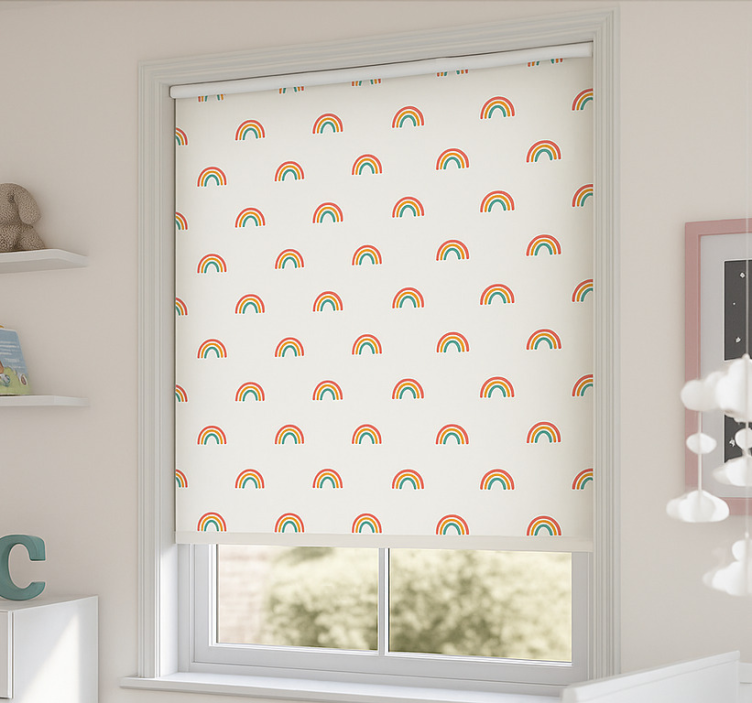 Reference: E6081Transform your space with our Colourful cascading rainbows scandinavian blind, a stunning blend of vibrant hues that dance across the fabric, creating a joyful atmosphere in any room. This delightful design features a beautiful array of cascading rainbows, adding a touch of whimsy to your decor. With easy assembly in just two clicks, simple cleaning, and quick disassembly, this scandinavian blind is as functional as it is eye-catching. Enjoy the perfect balance of light control and privacy while enhancing your home’s aesthetic!