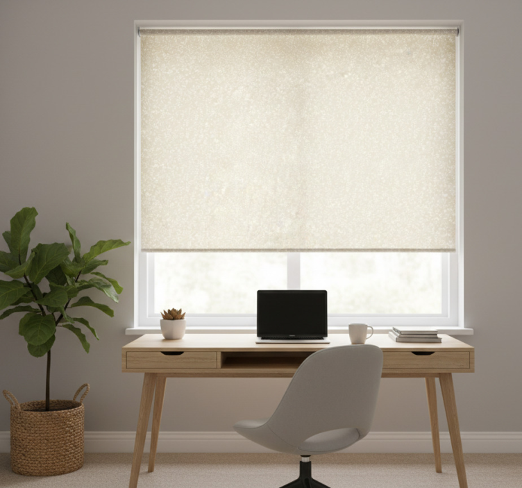 The Delicate beige and white blind home office blind home office serves as a perfect decorative element, elevating your workspace's aesthetic while providing essential functionality. Imagine a serene atmosphere where natural light dances gently through the fabric, creating a soothing environment that inspires creativity. This roller blind not only beautifies the room but also protects against direct sunlight, allowing you to curate a comfortable and productive atmosphere that reflects your personal style!