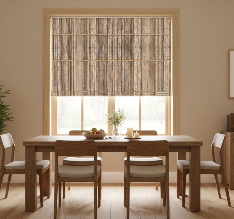 The Dining room blind handcrafted imitation bamboo canes dining room blind brings a touch of nature indoors, transforming your space into a tranquil haven. Imagine the warm sunlight filtering through, creating a soothing ambiance while providing the privacy you desire. This delightful blind is perfect for elevating your home decor, making it feel welcoming and stylish. Its handcrafted quality ensures that each piece is unique, adding a personal touch to your dining area!