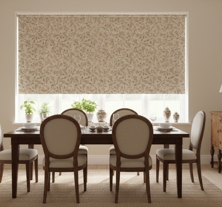 Dining room blind in brown vintage rose pattern