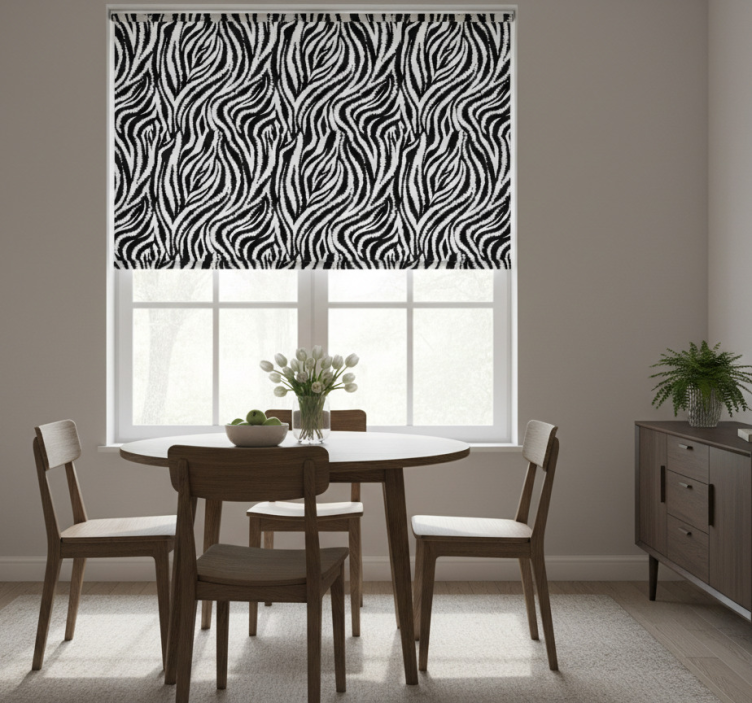 Dining room blind in classic irregular black and white zebra