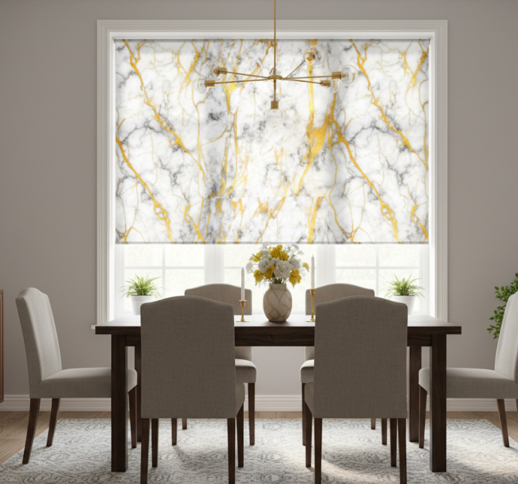 Dining room blind in elegant gray and gold marble
