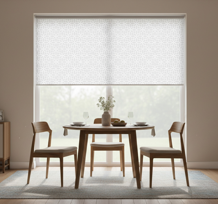 Installing the Dining room blind in gray and white modern pattern dining room blind is incredibly simple! With just two clicks, you can secure it in place, allowing you to enjoy your new decor in no time. Follow the easy instructions, and you’ll have your blind up and ready to transform your dining area!