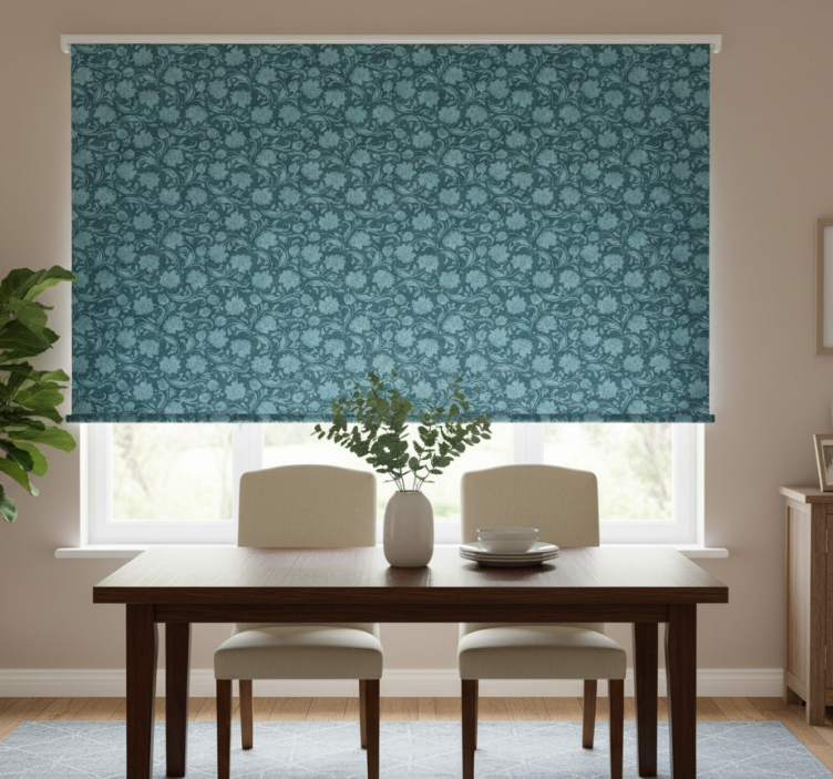 The Dining room blind in secret garden blue dining room blind is a perfect addition to enhance your interior decor. Its vibrant colors and elegant design breathe life into any dining area, creating an inviting atmosphere for family gatherings and entertaining guests. Imagine the compliments you will receive as this stunning blind becomes the focal point of your room!