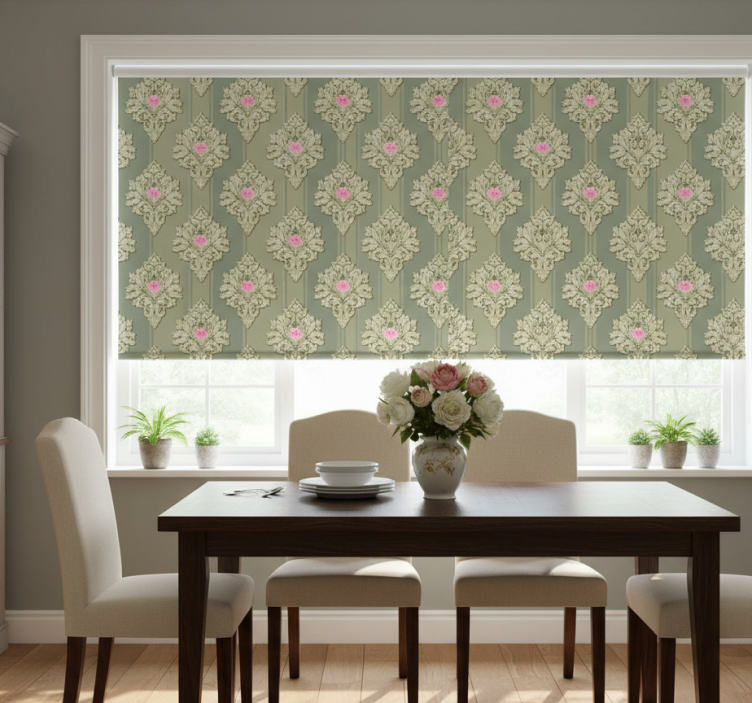 Dining room blind in vintage french green pattern