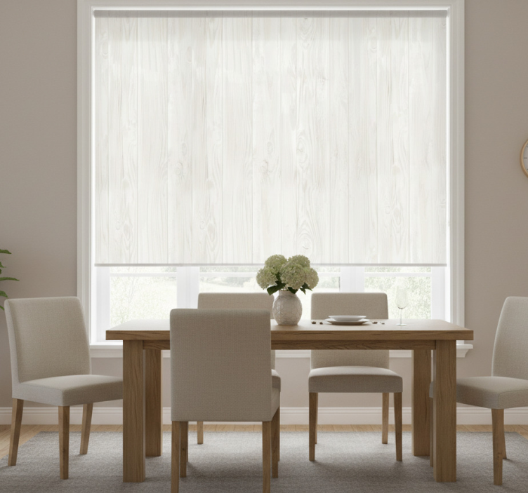 Reference: E6745Transform your space with our Dining room blind in white wood finish, a stunning addition that beautifully complements any decor. The elegant design features a classic white wood finish, enhancing the aesthetic of your dining room while providing essential functionality. With easy assembly in just two clicks, simple cleaning, and the ability to regulate room temperature, this roller blind is as practical as it is stylish!