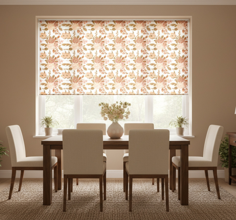 The Dining room blind with elegant pink pastel flowers dining room blind is the ideal choice for anyone looking to elevate their interior design. Its charming floral design not only adds a sophisticated touch but also creates a warm and inviting ambiance. Imagine hosting gatherings with friends and family, where the soft hues of pink flowers complement your dining experience beautifully! This roller blind serves as a functional piece of art, effortlessly blending style and practicality to enhance any dining room.