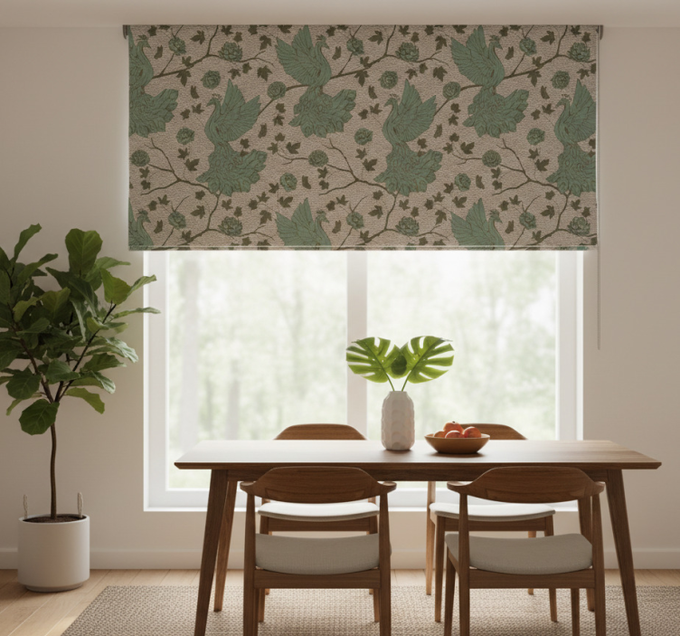 The Dining room blind with green birds on jute background dining room blind is an exceptional choice for enhancing your home decor. Its beautiful design effortlessly complements various interior styles, bringing a touch of nature indoors. Imagine hosting friends and family in an environment that radiates warmth and tranquility! This roller blind not only beautifies the room but also provides functionality, ensuring your dining area remains stylish and inviting.