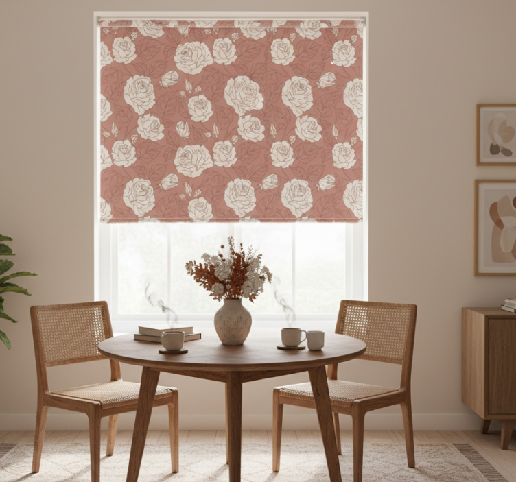 Enhance your interior with the Dining room blind with terracotta large roses dining room blind, a perfect blend of beauty and practicality! This charming blind not only elevates your decor but also provides essential privacy and sunlight control. Imagine enjoying your meals bathed in the soft glow filtered through these beautiful roses, creating a cozy atmosphere that invites conversation and connection. It's more than just a blind; it's a statement piece that transforms your dining room into a refined sanctuary!