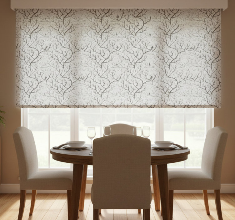 The Dining room blind with thin gray branches and birds dining room blind is not just a window covering; it's a statement piece! It adds a touch of nature to your decor, making your dining area feel warm and inviting. Imagine enjoying meals surrounded by the beauty of delicate branches and birds, transforming everyday moments into extraordinary experiences. This roller blind enhances your home’s aesthetic while providing essential privacy and light control, ensuring your dining area is both beautiful and functional!