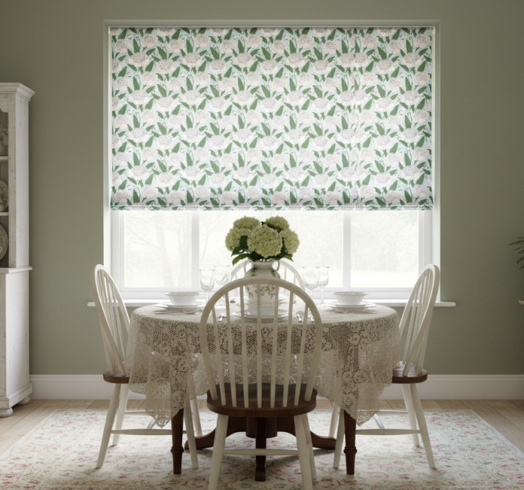 Choosing the Dining room blind with white flowers grandmillenial pattern dining room blind is an inspiring way to elevate your home decor! The enchanting floral design serves as a stunning focal point, bringing warmth and a sense of tranquility to your dining space. With its unique pattern, this roller blind complements various interior styles, making it a versatile choice for those looking to create an inviting atmosphere.