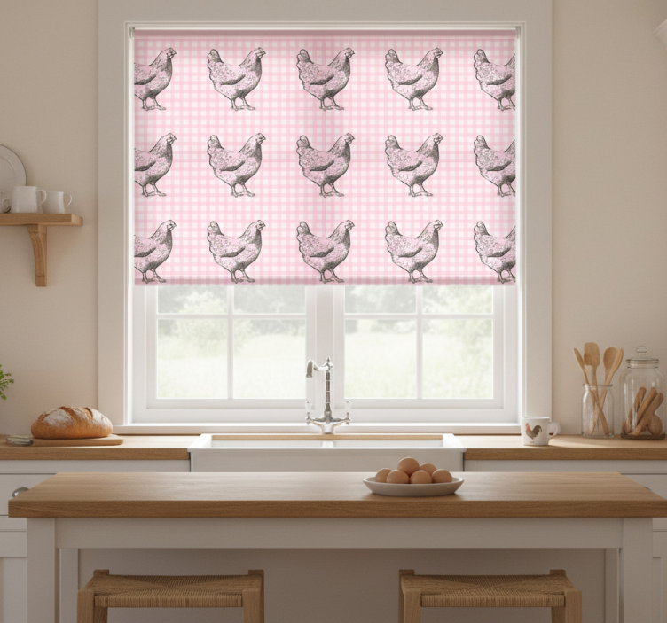 Reference: E6473Transform your kitchen into a charming haven with our Hen patterned blinds in a kitchen. Featuring delightful hen motifs, these blinds provide a whimsical touch that brightens up the space. The unique design combines functionality with style, offering easy assembly and disassembly in just two clicks. Keeping your kitchen clean and inviting is a breeze, while the blinds also protect against direct sunlight, ensuring your cooking area remains comfortable and private.