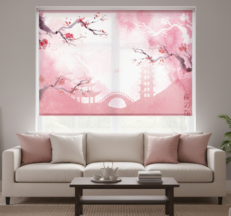 The Living room blind cherry blossom view living room blind is more than just a functional item; it is an inspiring decor piece that enhances the aesthetic appeal of any room. Imagine the gentle hues of cherry blossoms gracing your windows, inviting tranquility and elegance into your living space. This roller blind not only beautifies your home but also creates a serene atmosphere that is perfect for relaxation and rejuvenation.