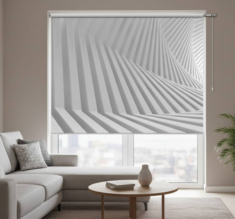 Living room blind in abstract geometric waves