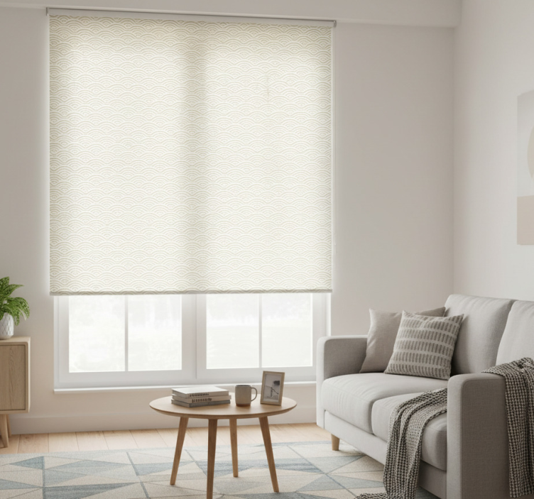Reference: E7752The Modern blind calm serene waves features a stunning design that embodies tranquility with its gentle wave patterns. This roller blind not only enhances your space aesthetically but also offers practical benefits such as easy assembly and disassembly in just two clicks. It is easy to clean and provides privacy when lowered, allowing you to enjoy your home in comfort while regulating temperature and blocking direct sunlight.